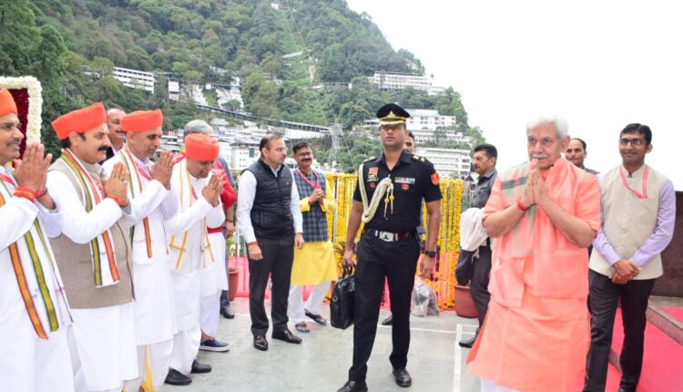 Jammu and Kashmir | Lt Guv Manoj Sinha paid obeisance at Shri Mata Vaishno Devi Shrine on the occasion of Maha Ashtami and prayed for the peace, prosperity and progress of J&K UT.