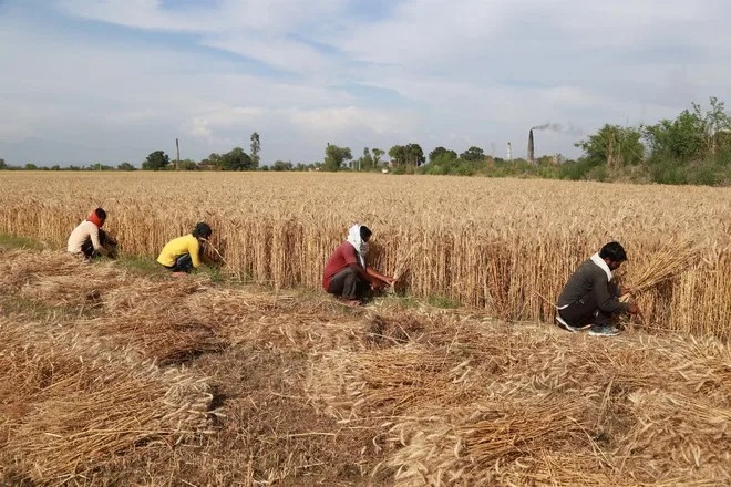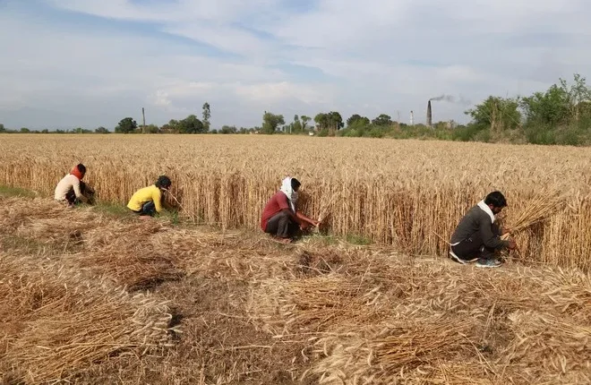 Scores of families were seen engaged in harvesting themselves in the fields in various hamlets along the International Border (IB) in Arnia.