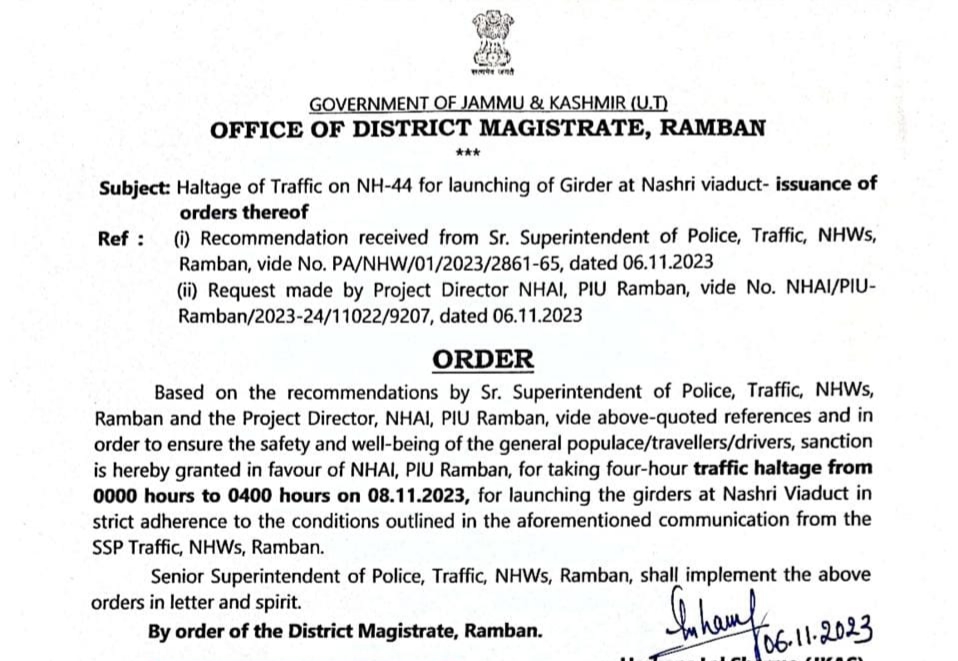 Jammu and Kashmir | Traffic will remain suspended on Jammu-Srinagar NHW on 08-11-2023 J&K / Ladakh By Editor Last updated Nov 7, 2023 316 Share 316 Share