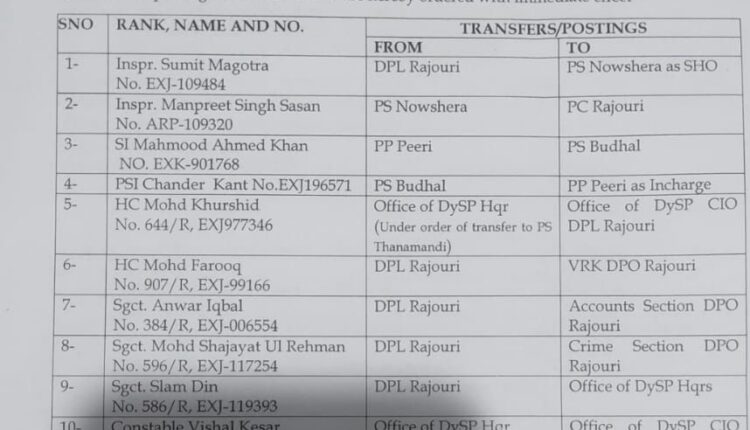 J&K | Transfer and Posting In Police department J&K / Ladakh By Editor Last updated Nov 15, 2023 1,208 Share 1,208 Share