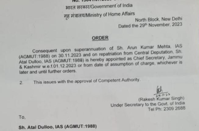 GoI Appointed Atal Dulloo, IAS (AGMUT: 1988) As New Chief Secretary, Jammu & Kashmir
