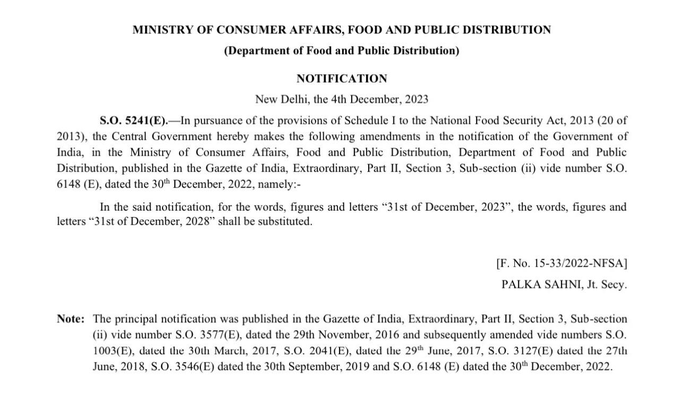 Under the National Food Security Act, the Centre extends the free food-grains scheme for another five years until 31 December 2028. Nation By Editor Last updated Dec 11, 2023 176 Share 176 Share