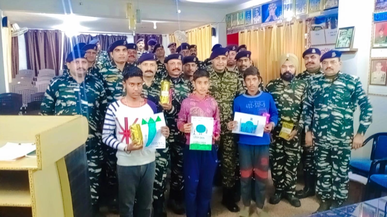 During this period, other activities like special cleanliness drive, tree plantation programme, painting competition among children and group discussion on cleanliness were also organized in the camp premises located in Sidhra and Banihal. On the occasion of closing of Swachhta Pakhwada, prizes were distributed and Appreciation letters were also distributed to the children and force members who participated in the painting competition and group discussion and other activities. Naveen Kumar Yadav, Second in Command, Sangeeta Chauhan, Deputy Commandant and Neeraj Kumar Jha, Deputy Commandant were also present in this Pakhwada.