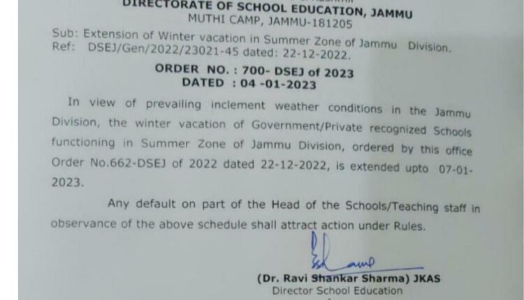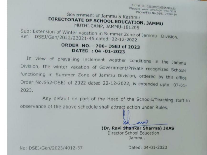• Winter Vacations In Jammu Schools Extended Up To January 6