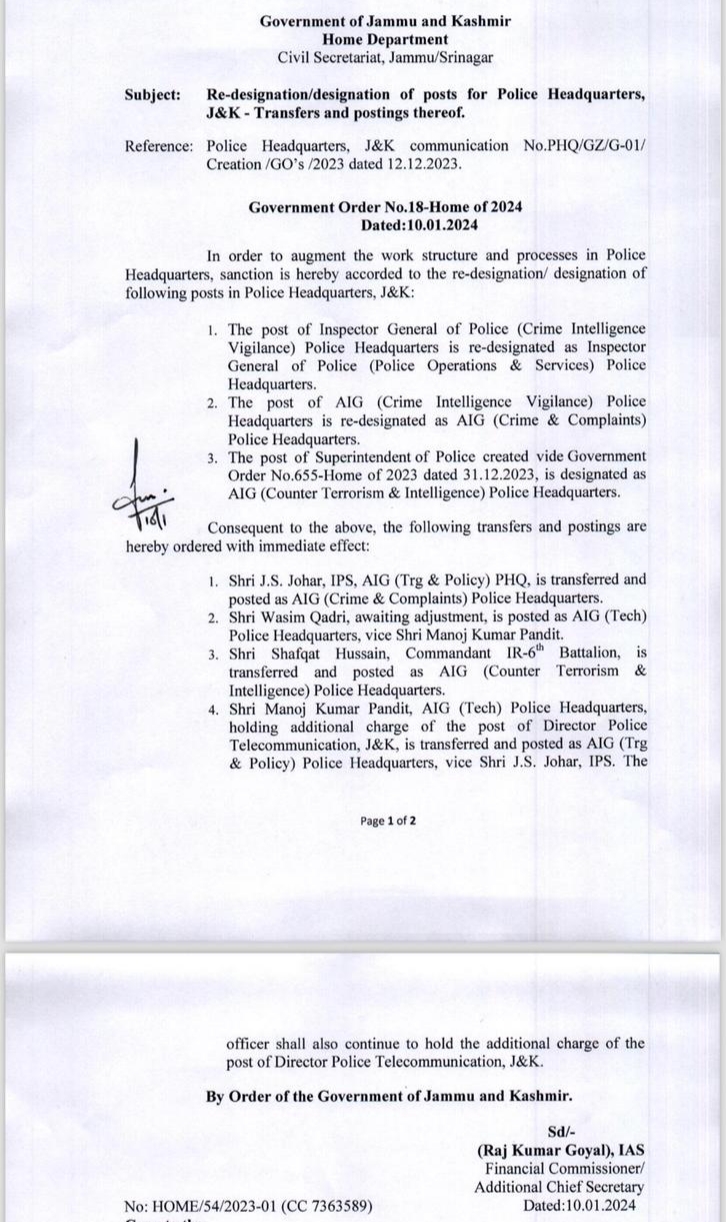 Transfer and Posting in Police department. J&K / Ladakh By Editor Last updated Jan 10, 2024 260 Share 260 Share
