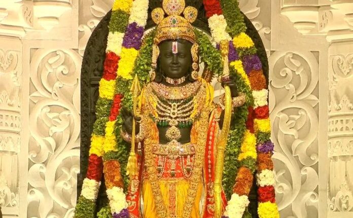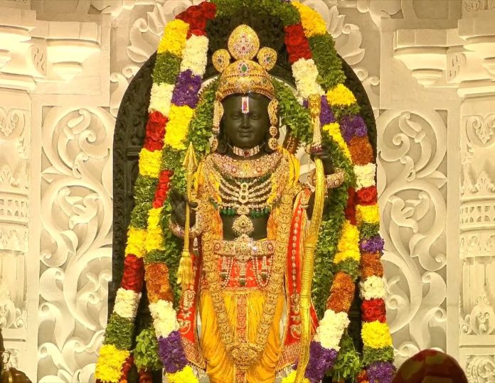 Ayodhya, Jan 22: The new Ram Lalla idol was consecrated at the newly constructed temple here on Monday amid grand celebrations in the town, with Prime Minister Narendra Modi participating in the rituals.