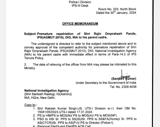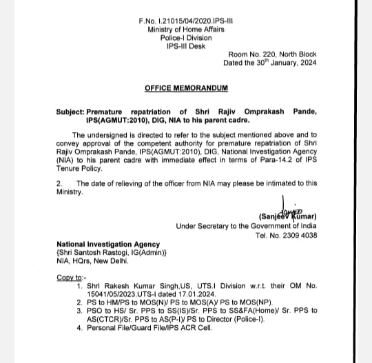 DIG Pandey repatriated to parent cadre J&K / Ladakh By Editor Last updated Jan 30, 2024 325 Share 325 Share
