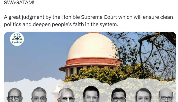 “A great judgment by the Hon’ble Supreme Court which will ensure clean politics and deepen people’s faith in the system,” posts PM Narendra Modi Nation By Editor Last updated Mar 4, 2024 166 Share 166 Share