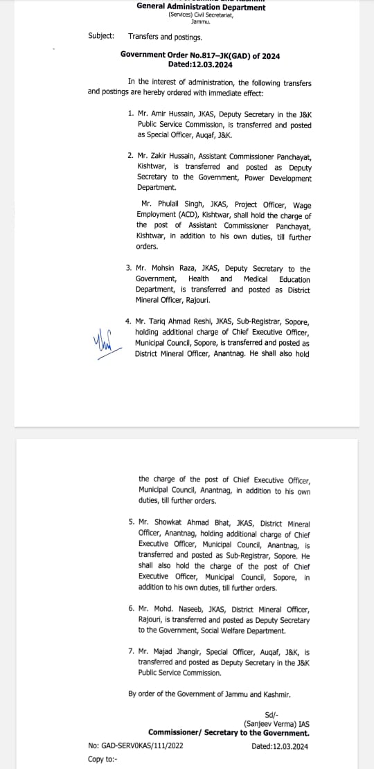 J&K | Transfer and Posting in Civil Administration. J&K / Ladakh By Editor Last updated Mar 12, 2024 344 Share 344 Share