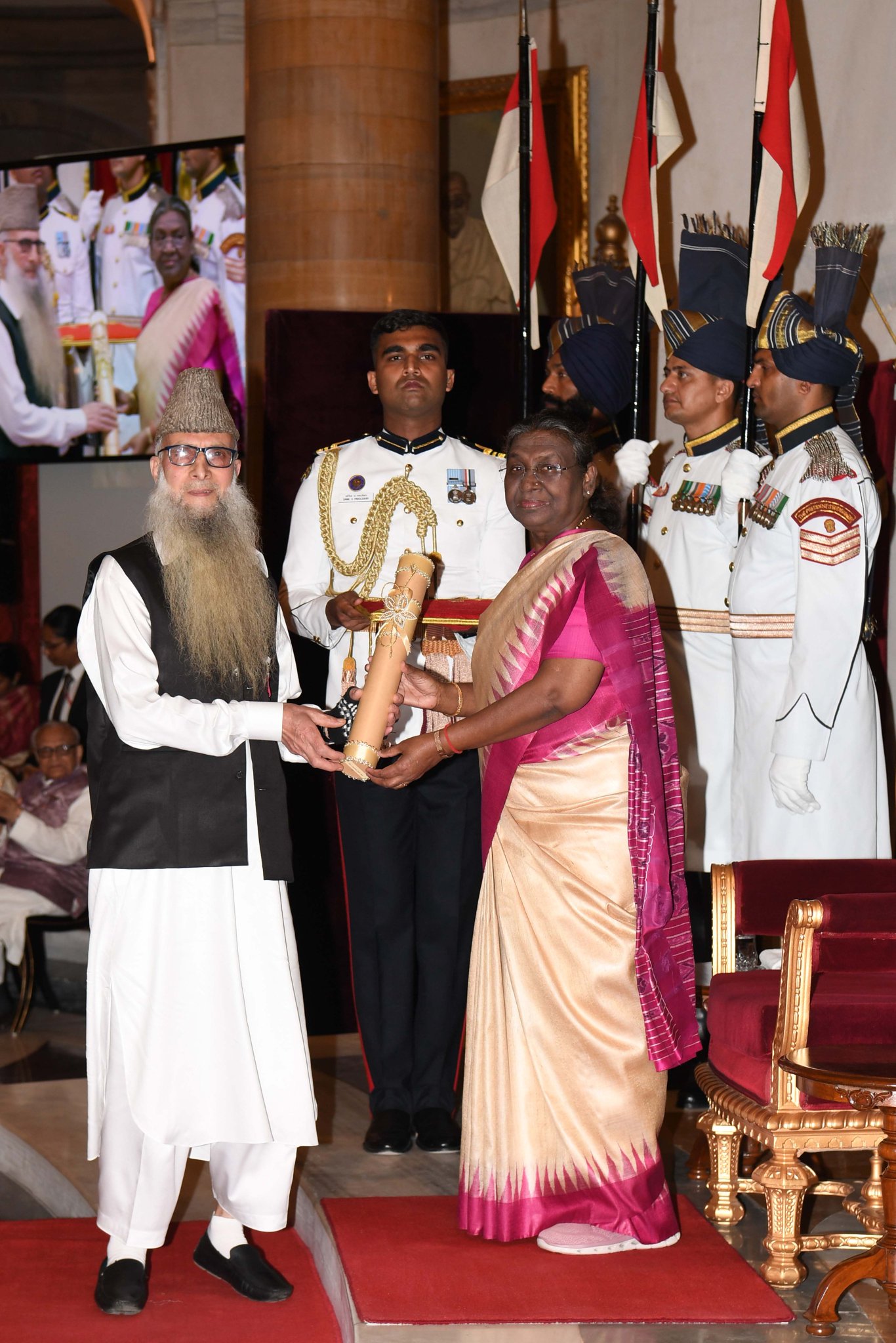 President Droupadi Murmu presents Padma Shri in the field of Art to Ghulam Nabi Dar. He is known for his exceptional artistic talent and significant contribution to preserving and promoting the cultural heritage of Kashmir through his intricate wood carvings.