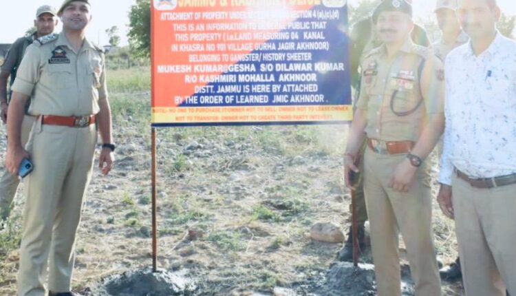 Jammu, May 2, 2024: In a significant development, the Jammu & Kashmir Police has successfully seized properties valued at crores belonging to the notorious gangster, Mukesh Kumar alias Gesha, son of Dilawar Kumar, resident of Akhnoor.