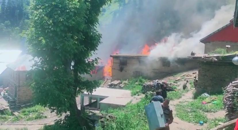 Jammu: Nearly a dozen houses were razed to ashes in massive fire which broke out in Banihal’s Mahu Mangat area of Ramban district on Tuesday.